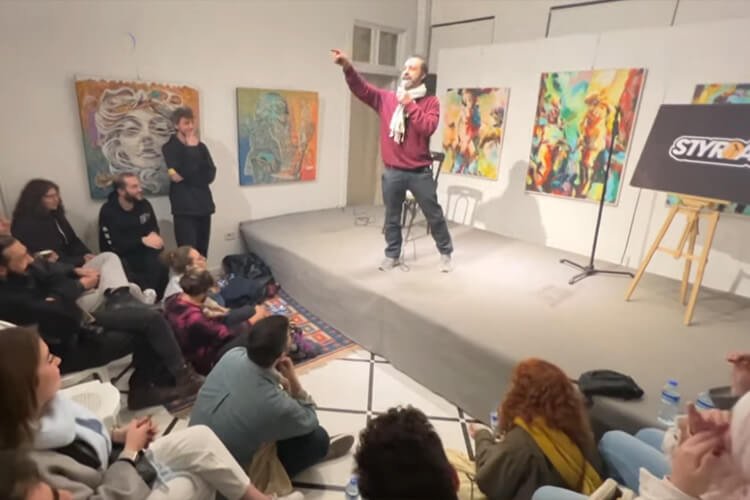 Top Press Articles The New York Times In Syria, Comedians Explore a Stage With No Limits. For Now. February 27, 2025 Aljazeera In Syria, comedy is a balm for the war-weary May 10, 2023 Latest Press Articles Malay Mail ‘Never again fear’: Post-Assad Syria finds its voice as stand-up comedians break taboos onstage December 27, 2024 The Business Standard 'No more fear': Stand-up comedy returns to post-Assad Syria December 26, 2024 The Jordan Times 'No more fear': Stand-up comedy returns to post-Assad Syria December 26, 2024 NDTV World 'No More Fear': Stand-Up Comedy Returns To Post-Bashar al-Assad Syria December 26, 2024 صحيفة العرب "ستيريا" تقدم أول "ستاند أب" كوميدي في سوريا ما بعد الأسد December 25, 2024 The Jakarta Post 'No more fear': Stand-up comedy returns to post-Assad Syria December 25, 2024 Independent عربية "ستاند أب" كوميدي... سقوط الأسد ينعش فنون الشارع December 24, 2024 AFP أول ستاند-اب كوميدي في دمشق بعد إسقاط الأسد: زمن الخوف انتهى | AFP December 24, 2024 موقع لبنان الكبير أول ستاند-اب كوميدي في دمشق بعد إسقاط الأسد: زمن الخوف انتهى December 24, 2024 جريدة المدينة أول ستاند- اب كوميدي في دمشق بعد إسقاط الأسد December 24, 2024 MCD مونت كارلو الدولية أول ستاند-اب كوميدي في دمشق بعد إسقاط الأسد: زمن الخوف انتهى December 24, 2024 Story Catchers DAMASCUS' LAUGHER - ضحكة دمشق March 3, 2024 MBC1 (صباح الخير ياعرب) أول ستاند اب كوميدي في سوريا May 18, 2023 News 18 Syrian Stand-up Comedy Has War-weary Crowds in Stitches May 16, 2023 Der Standard Syriens erste Comedy-Gruppe: "Wenn alles schön wäre, gäbe es nichts zu lachen" May 12, 2023 The Arab Weekly May 11, 2023 Daily News Syrian stand-up comedy has war-weary crowds in stitches May 11, 2023 The Youth Times Syrian stand-up comedy has war-weary crowds in stitches May 10, 2023 Barron’s Syrian Stand-up Comedy Has War-weary Crowds In Stitches May 10, 2023 Al-monitor Syrian stand-up comedy has war-weary crowds in stitches May 10, 2023 Aljazeera In Syria, comedy is a balm for the war-weary May 10, 2023 Kuwait Times Syrian stand-up comedy has war-weary crowds in stitches May 10, 2023 Sharjah 24 أول فريق ستاند أب كوميدي في سوريا يواجه أزماتها بالدعابات May 10, 2023 أخبار الآن May 10, 2023 Previous Page1 Page2 Page3 Next